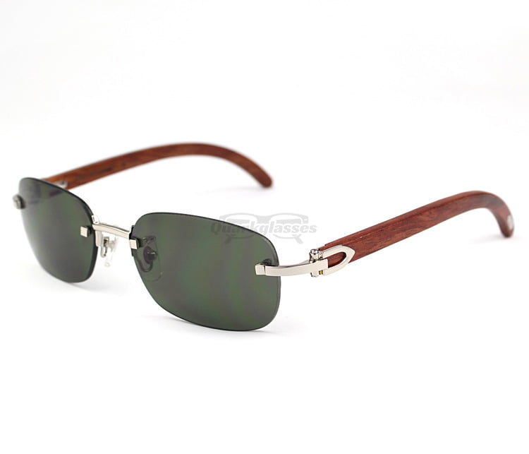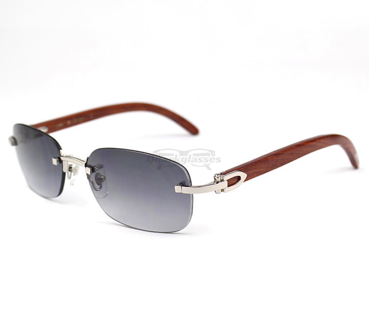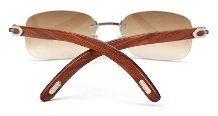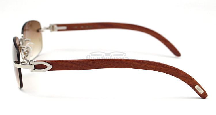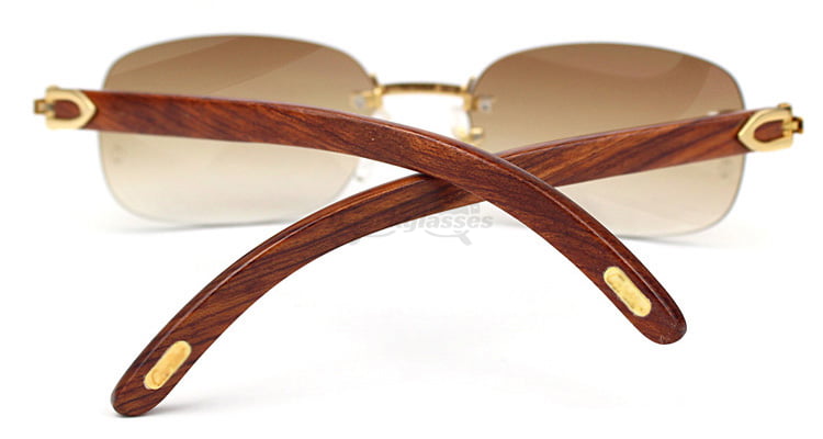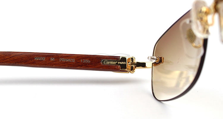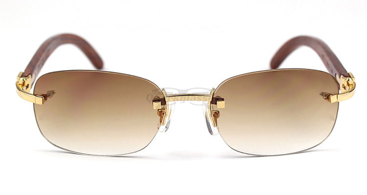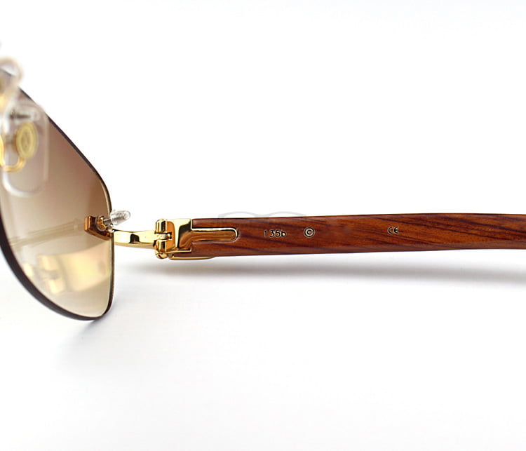 Cartier Classic Plated Rose Wood Rimless Sunglasses CT3524015