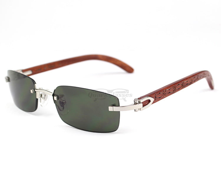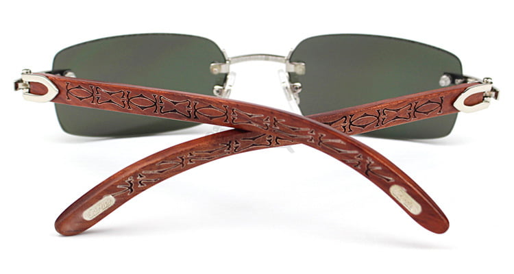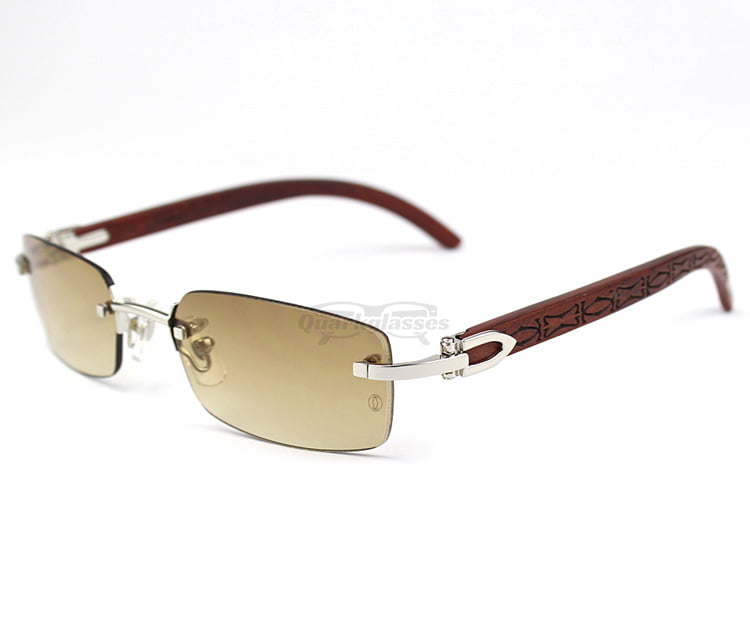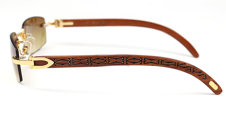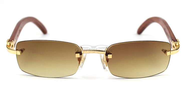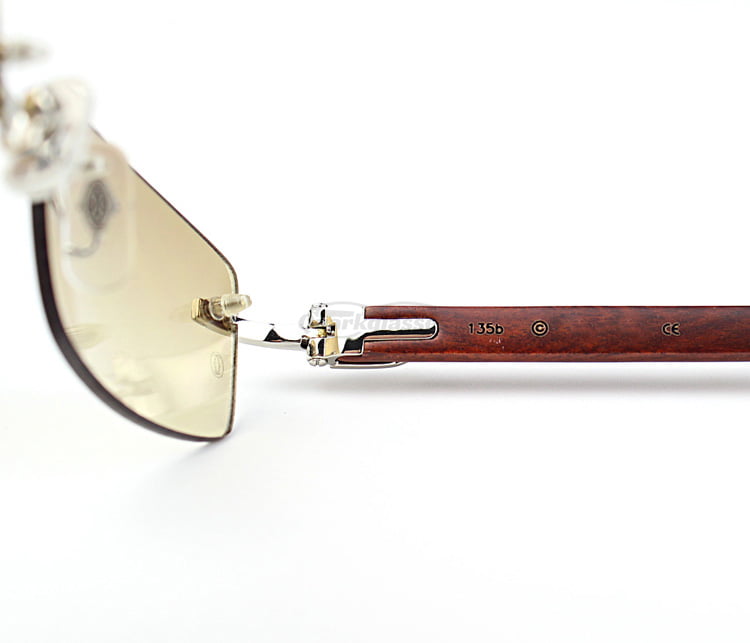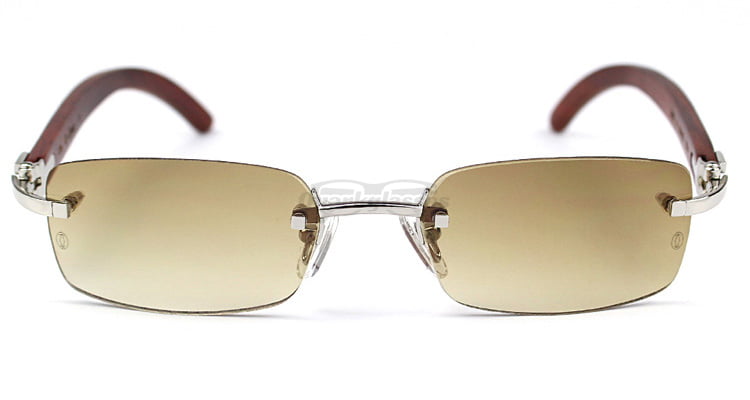 Cartier Classic RoseWood Rimless C Decor Sunglasses CT3524013